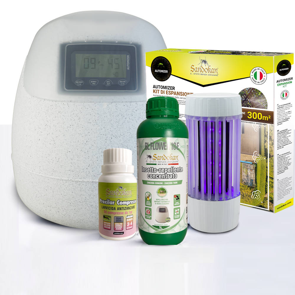 Noi di Sandokan abbiamo sviluppato un sistema di lotta integrata per proteggere il tuo giardino dalle zanzare. Un unico sistema di difesa può non bastare. A differenza di tutti gli altri sistemi noi di Sandokan ti offriamo la soluzione completa per proteggere te, la tua famiglia e i tuoi animali domestici dalle zanzare e dalle pericolose malattie che possono trasmettere. Per questo abbiamo studiato dei kit di difesa calibrati sulle tue esigenze.
